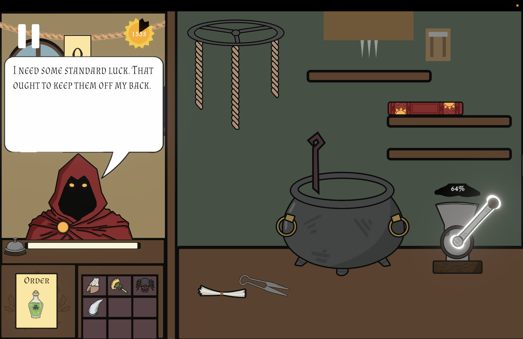 A single-player crafting and management simulation strategy game where you play as an alchemist, brewing potions, refining ingredients, and fulfilling customer requests to build your reputation and grow your potion shop.
